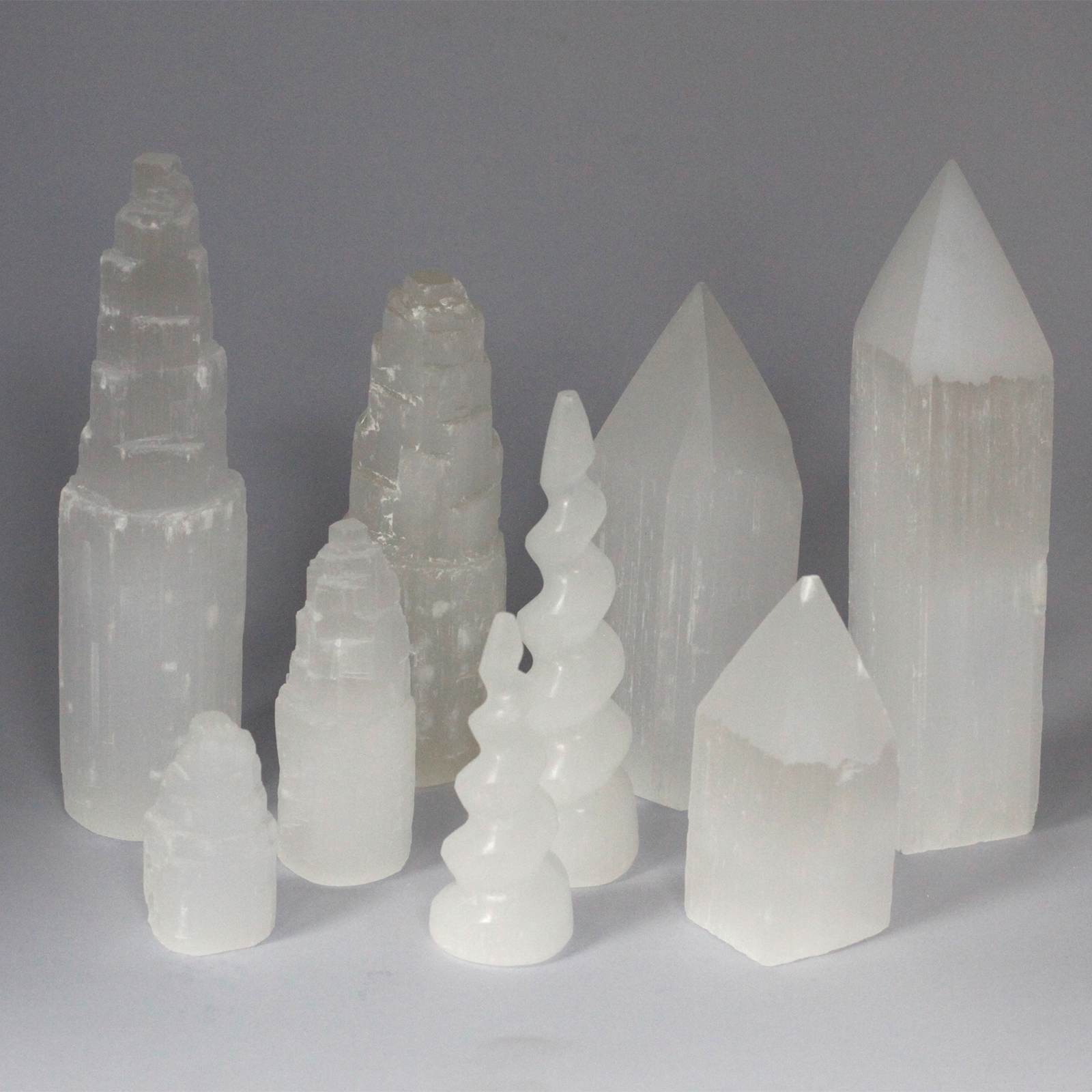 Ezek a szelenit termékek Marokkó hegyeiből származnak. A kristályt a görög napistennőről, Szelénéről nevezték el, és termékeinkben láthatja, miért. A tejszerű kristályok fényvisszaverése szó szerint holdszerű.