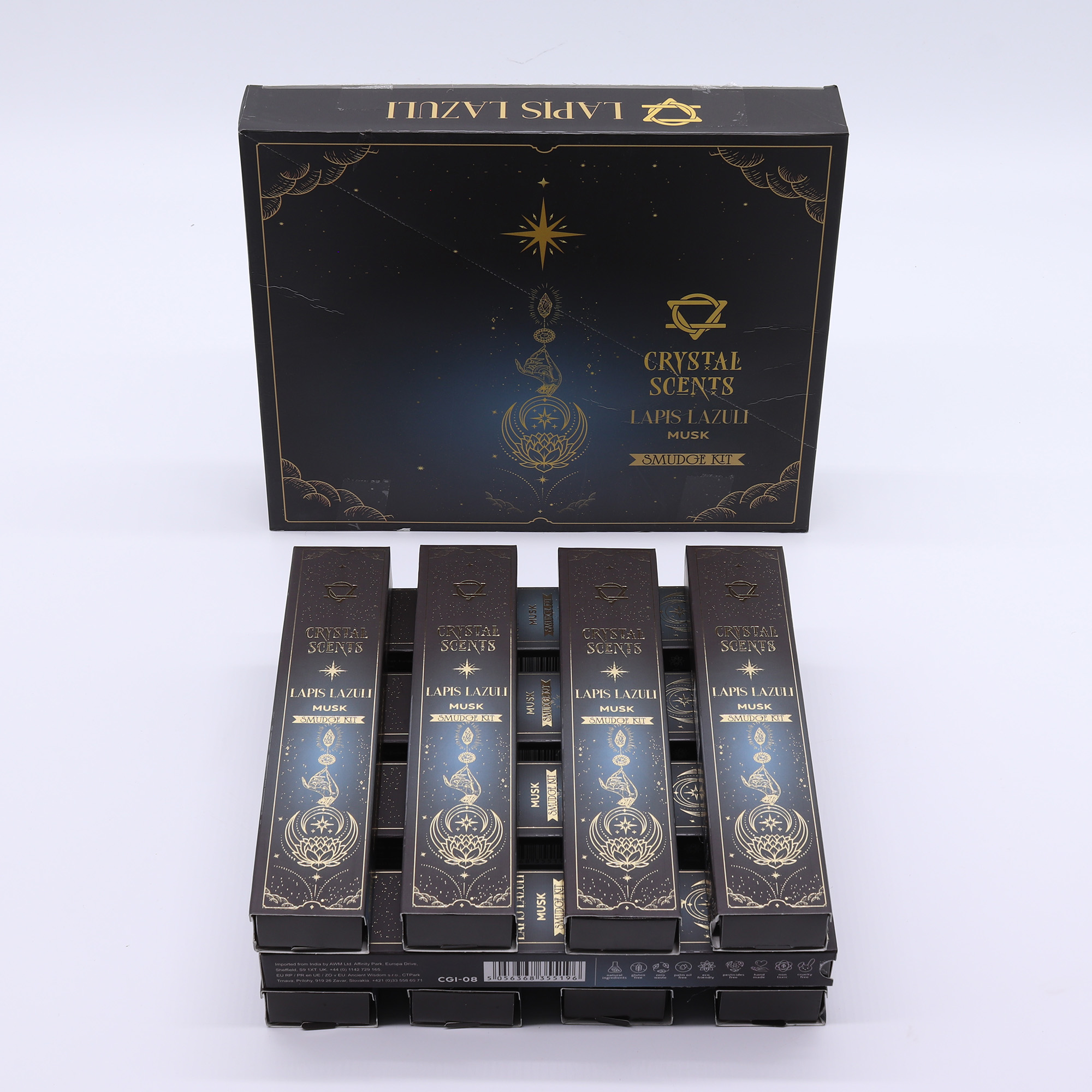 Každé balenie obsahuje 10 ručne vyrábaných vonných tyčiniek a pravý kryštál lazuritu, vďaka čomu je ideálne pre ľudí zameraných na všímavosť, študijné pomôcky alebo kreatívnu inšpiráciu. Táto kombinácia pôsobí sofistikovane a je vhodná pre tých, ktorí hľadajú premyslený, introspektívny rituál.
