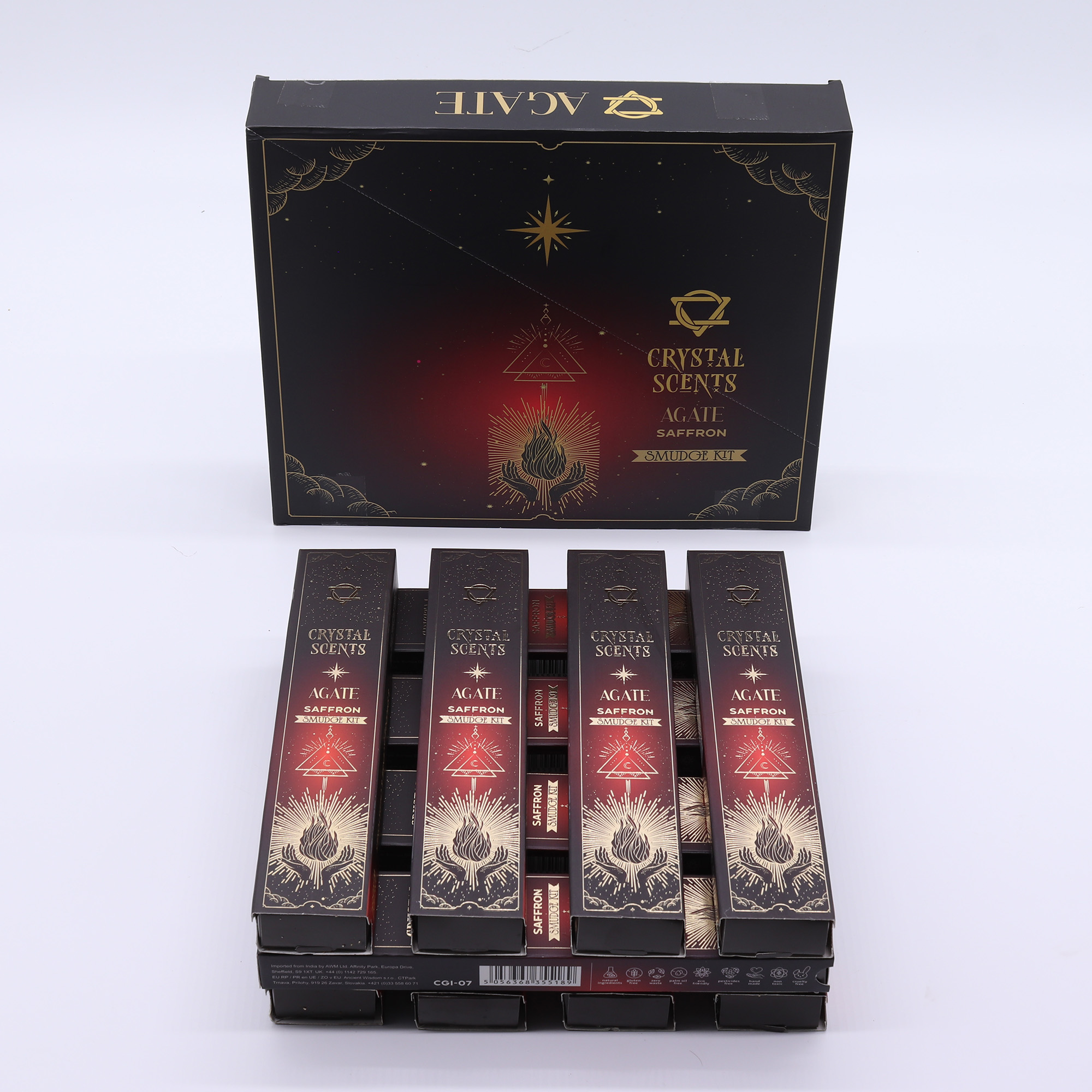 Toto kadidlo spája hrejivú vôňu šafranu s kryštálom červeného achátu, čím vytvára uzemňujúci rituál pre tých, ktorí hľadajú stabilitu a emocionálnu silu. Červený achát sa tradične spája s odvahou, odolnosťou a stabilnou uzemňujúcou energiou. Mnohí ho používajú počas stresujúcich alebo neistých období, keď potrebujú obnoviť rovnováhu a vnútornú silu. Hlboké, zemité teplo šafranu tieto vlastnosti nádherne dopĺňa a vytvára stabilizujúci a upokojujúci rituál.